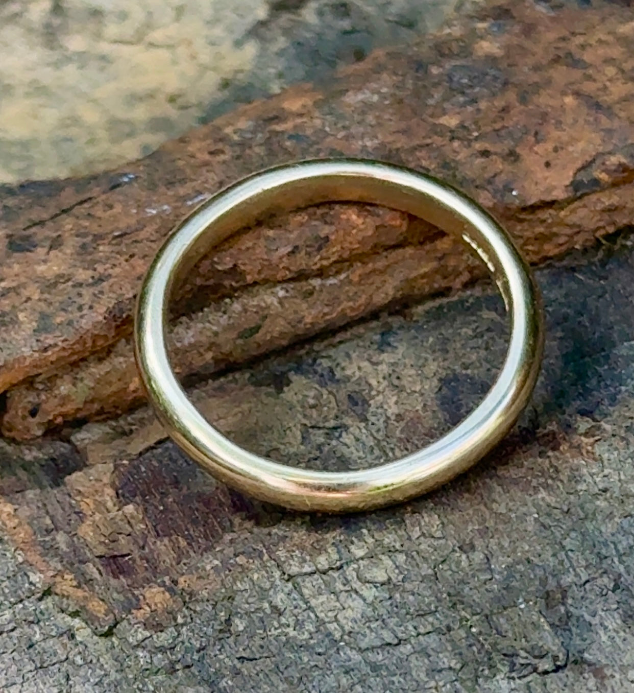 Simple but elegant solid 9ct Gold Band which can be worn on it's own for a timeless and subtle look or as a partner for another ring. The ring band is smooth and can be worn through work, rest and play and will last for years to come.
