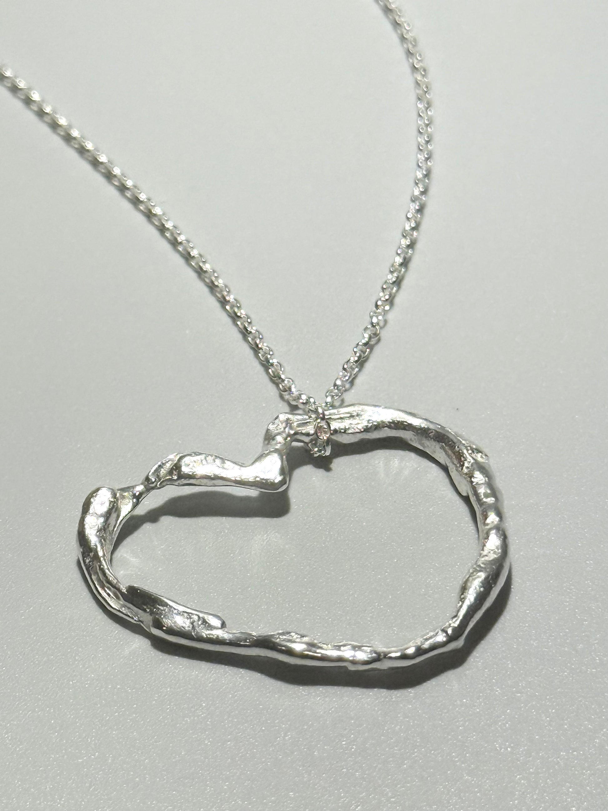 Each piece emerges from a process where molten metal is guided—rather than forced—into its distinctive form. The unpredictability of the metal ensures genuine individuality; no two pendants are identical. The outcome is a tactile piece that balances understated elegance with quiet confidence, creating a wearable statement that speaks through authenticity and personal style.