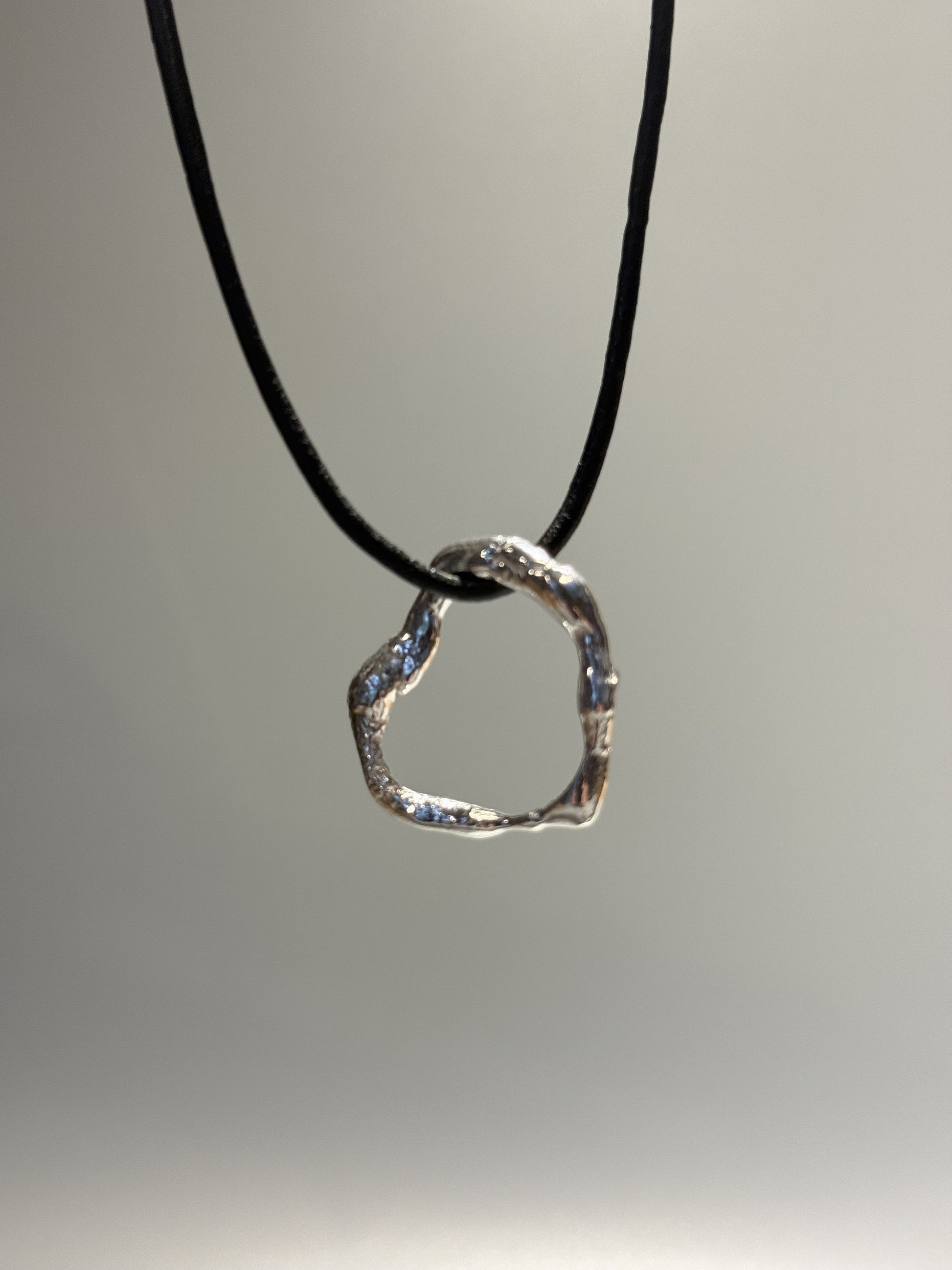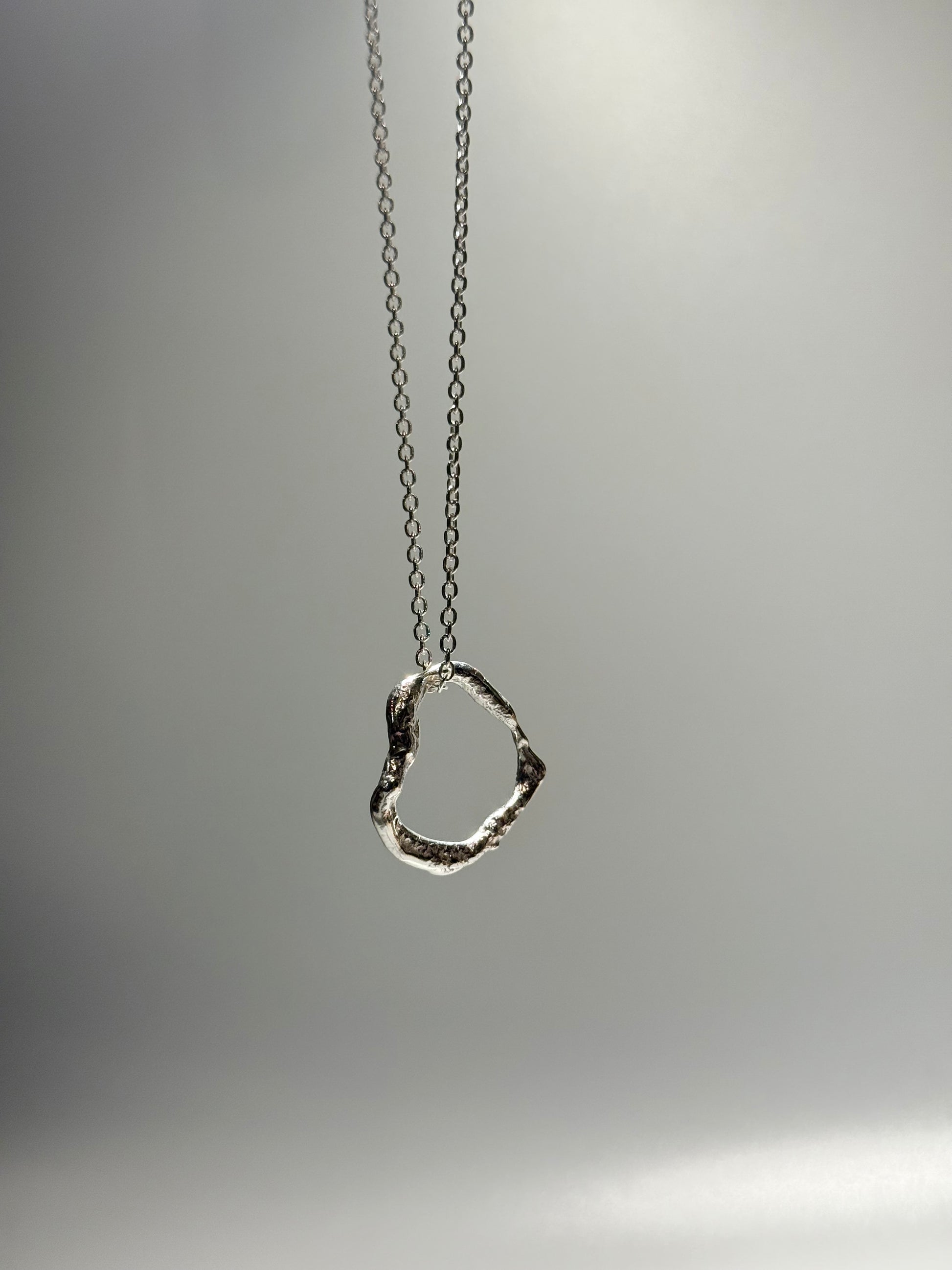 Each piece emerges from a process where molten metal is guided—rather than forced—into its distinctive form. The unpredictability of the metal ensures genuine individuality; no two pendants are identical. The outcome is a tactile piece that balances understated elegance with quiet confidence, creating a wearable statement that speaks through authenticity and personal style.